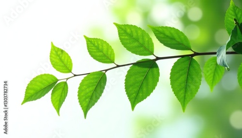 Leafy branch with leaves isolated on white background, foliage, greenery, single