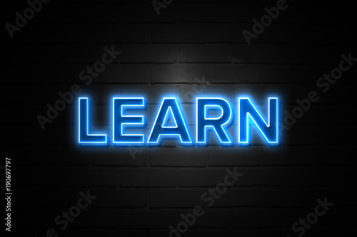 Learn neon Sign on brickwall