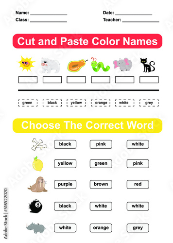 Learning about color worksheet. Preschool Education. Vector illustration.