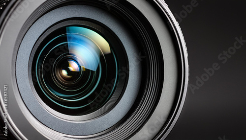 Lens, camera, reflection, glow, reflection, black background, close-up