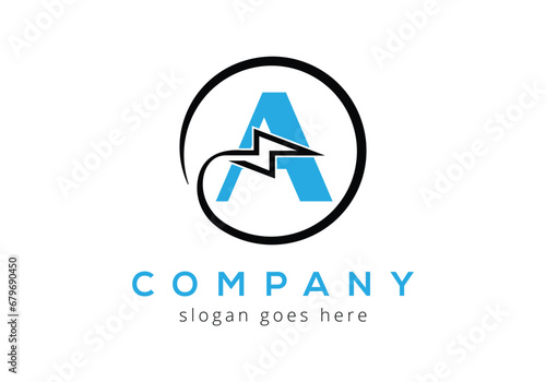 Letter A lighting thunder bolt Logo Design Vector Template.