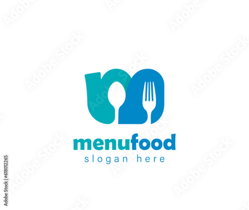 Letter M Logo Template for Restaurant and cafe. Spoon and Fork negative space vector