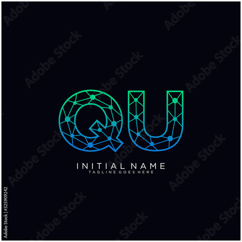 Letter QU abstract line art logo template.