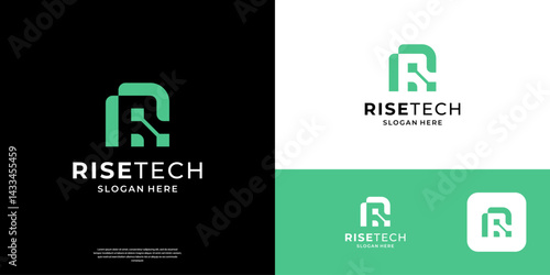 Letter R logo design template. Abstract initial R with tech symbol logos.