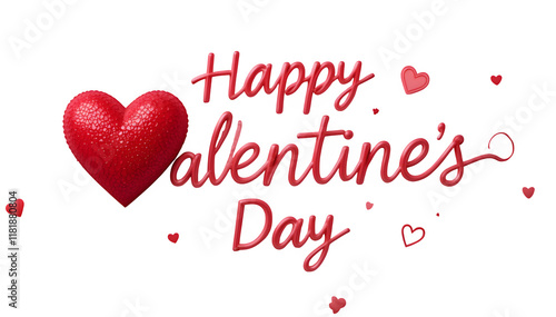 Lettering Happy Valentines Day banner. Valentines Day greeting card template with typography text happy valentine`s day and red heart and line on PNG background