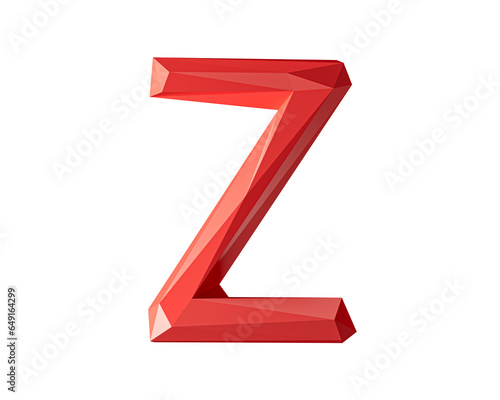 Letters made of low poly red material. 3d illustration of simple polygonal alphabet isolated on white background