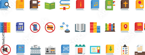 Library Icon Set With Flat Style Simple