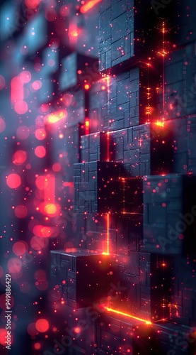 light background, black cubes with neon lights in the corners