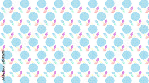 水色の紫陽花とピンク・黄・青・緑・紫色の小花のパターン|Light blue hydrangea and pink / yellow / blue / green / purple florets pattern