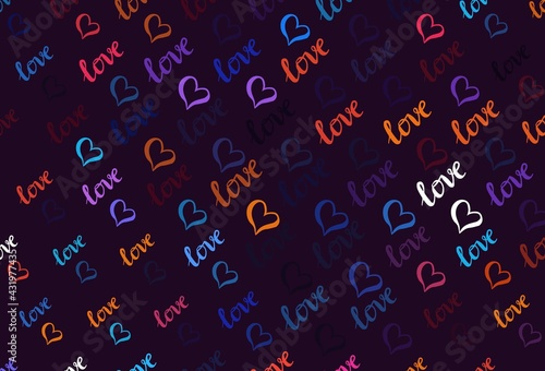 Light Blue, Red vector background with Shining hearts.