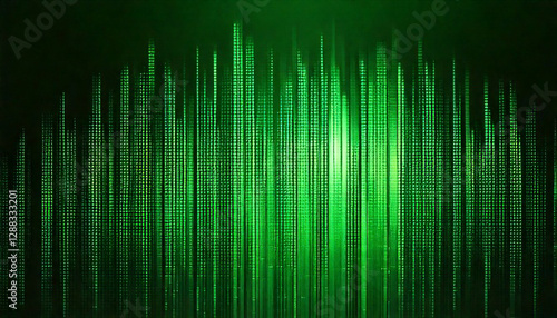 Light effect overlay on gradient neon green vertical pixel pattern. Raster texture with dither effect future artwork background.