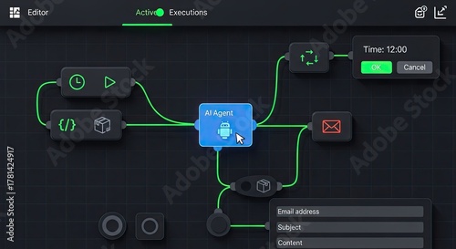 Light Flow Automation Artificial Intelligence Software Interface Nodes Triggers Data Tool Dashboard Coding. 3D Process.