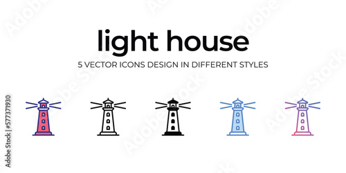 light house Icon Design in Five style with Editable Stroke. Line, Solid, Flat Line, Duo Tone Color, and Color Gradient Line. Suitable for Web Page, Mobile App, UI, UX and GUI design.