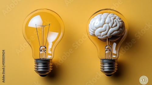 Lightbulb with a Brain Inside and a Regular Lightbulb