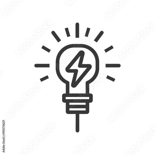 Lightbulb with a lightning bolt inside and radiating rays