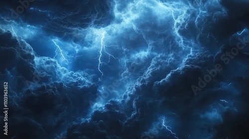 Lightning illuminates dark storm clouds during a dramatic thunderstorm at night
