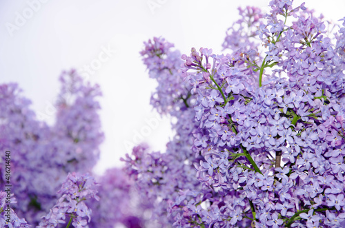 Lilac blossoming branches, Selective focus