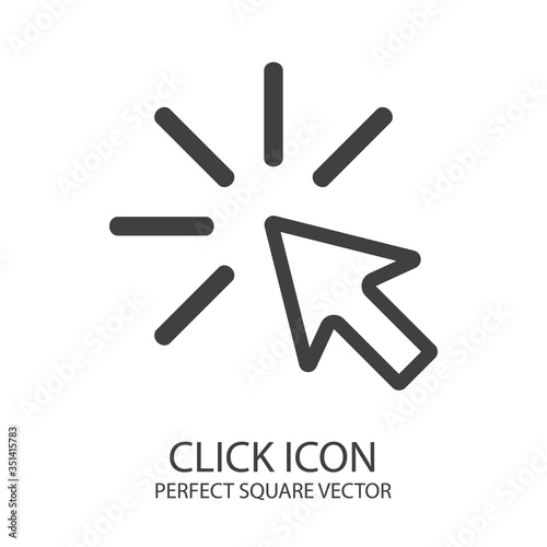 Line arrow cursor click vector icon for the computer mouse pointer. Perfect square illustration. Web outline logo with mouse click symbol isolated on white background.