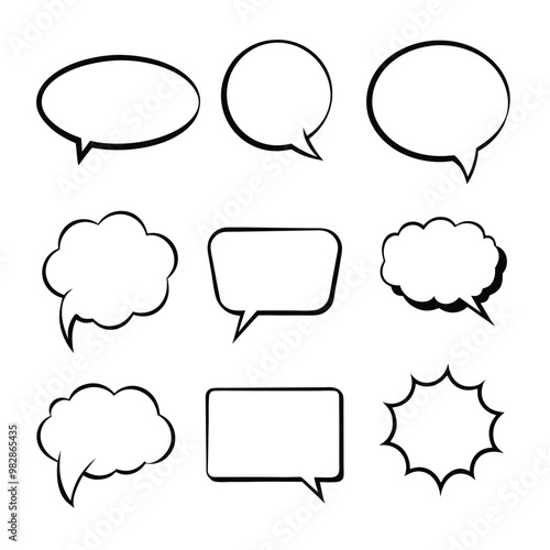 Line Art Comic Speech Bubbles with Halftone Shadows.
