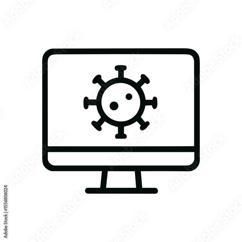Line Art Computer Screen Displaying Virus Icon Representing Pandemic Situation