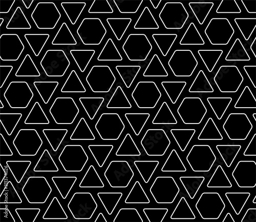 Line art geometric seamless pattern. Black and white vector tileable background.
