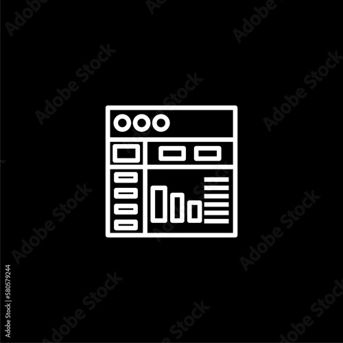 Line chart dashboard element icon isolated on black background.