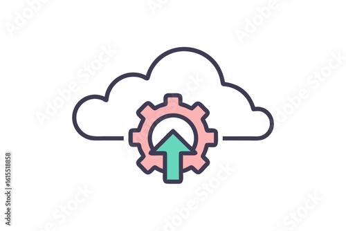 line cloud arrow up gear overlay icon