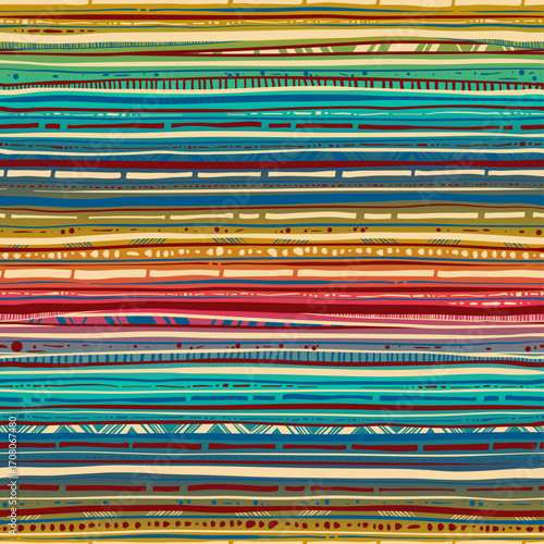 Line Doodle Seamless Pattern 4 - Colorful Horizontal Stripes 1