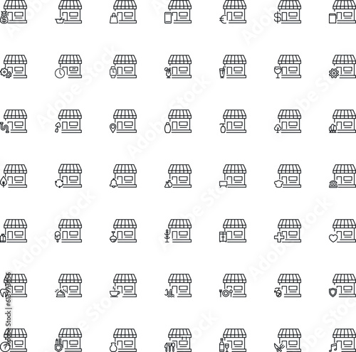 Line icon set of various items next to Shop