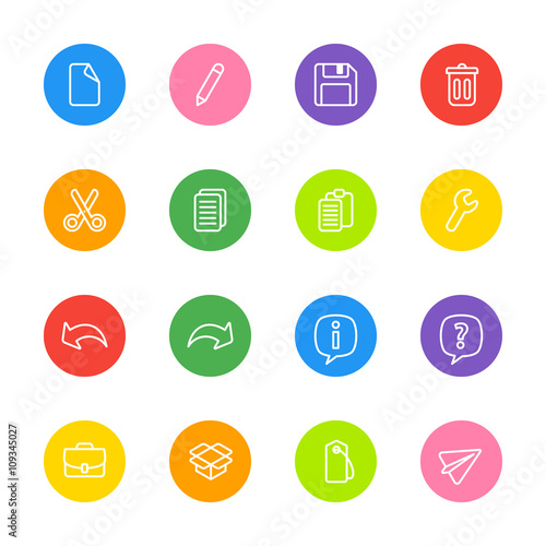 line web icon set on colorful circle for web design, user interface (UI), infographic and mobile application (apps)