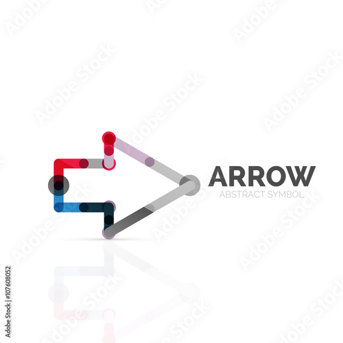 Linear arrow abstract logo, connected multicolored segments of lines in directional pointer figure