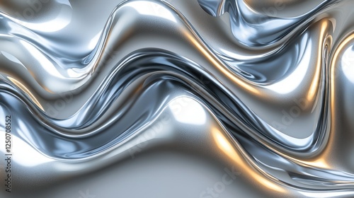 Liquid metal waves flowing, light reflections, abstract background, design element