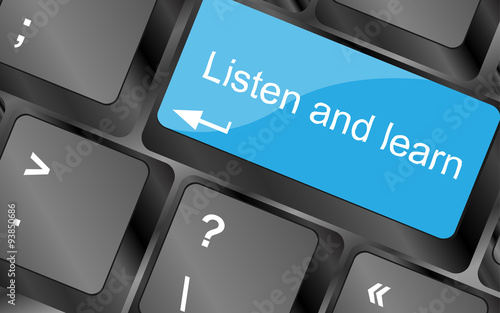 Listen and learn. Computer keyboard keys with quote button. Inspirational motivational quote. Simple trendy design