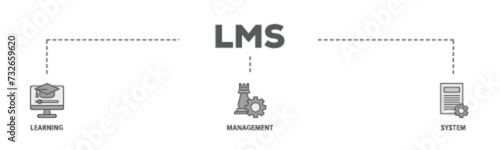 LMS banner web icon illustration concept with icon of online learning, administration, growth, and automation icon live stroke and easy to edit