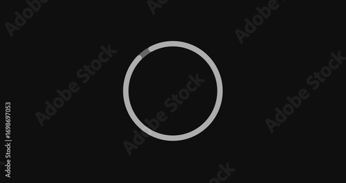 Loading circle moving on a black background, loading icon for download upload progress, load game screen data, buffering process. Load charging cyberspace timing circling feature. Loading screen.