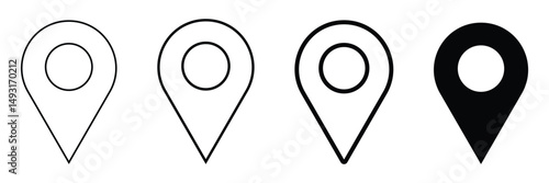 Location icon set in different styles vector illustration for digital maps apps interface pointer navigation travel direction marker symbol graphic.