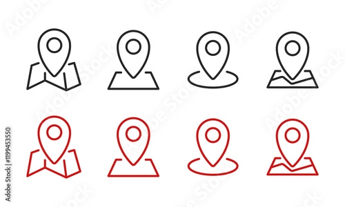 Location on map, linear style icon set. Map pin on specific location symbol. Location pointer. Map pin editable stroke. Vector illustration