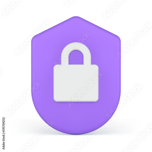 Lock data protect padlock shield security cyber technology crime control 3d icon realistic vector