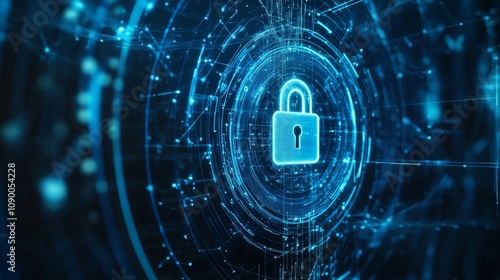 Lock symbol with digital network connection. Data security concept. Technology background.