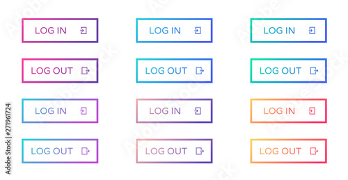 log in log out web buttons set. outline ui web buttons in flat style. rectangular vector buttons on trendy gradients with icons for web and ui design