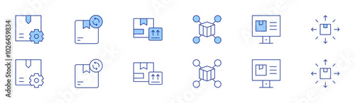 Logistics icon set in two styles, Duotone and Thin Line style. Editable stroke. distribution, tracking, production, product, this side up