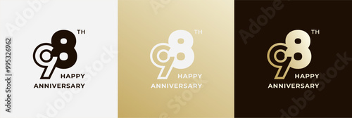 Logo 98th, 98 years anniversary, design template for celebration, birthday, greeting and invitation. Editable file
