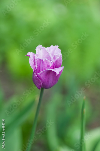 Lonely tulip against green background