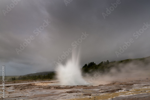 long exposure view of the Strokkur Geysir in Iceland as it erupts