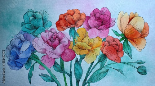 Love for Dad: A Colorful Ink Wash Bouquet for Father's Day. High quality