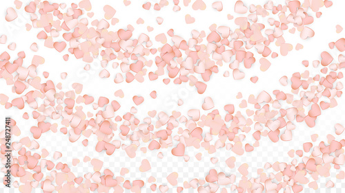 Love Hearts Confetti Falling Background. St. Valentine's Day pattern Romantic Scattered Hearts. Vector Illustration for Cards, Banners, Posters, Flyers for Wedding, Anniversary, Birthday Party, Sales.