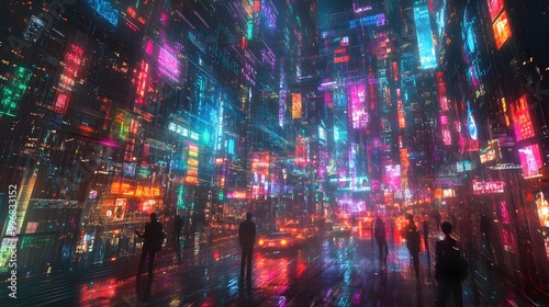 Luminescent Online Bazaar with Kinetic Product Holograms and Autonomous Last Mile Delivery A Futuristic Vision of Cyber Monday Shopping in a Neon Soaked Cityscape