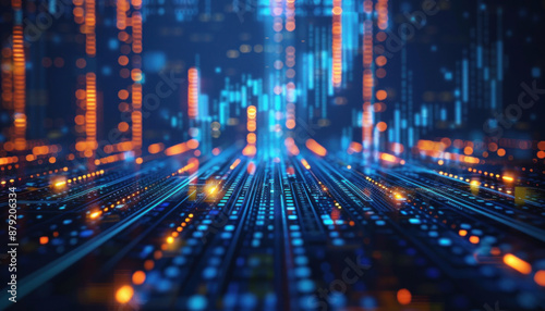 Luminous abstract financial charts in digital format