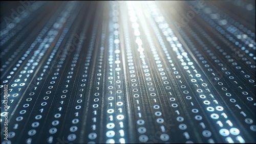 Luminous Binary Code Flowing in Close-Up Perspective with Gigapixel Detail
