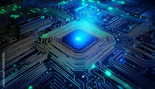 Luminous Circuit Matrix – A sleek, neon-lit circuit board featuring intricate, electrified patterns.